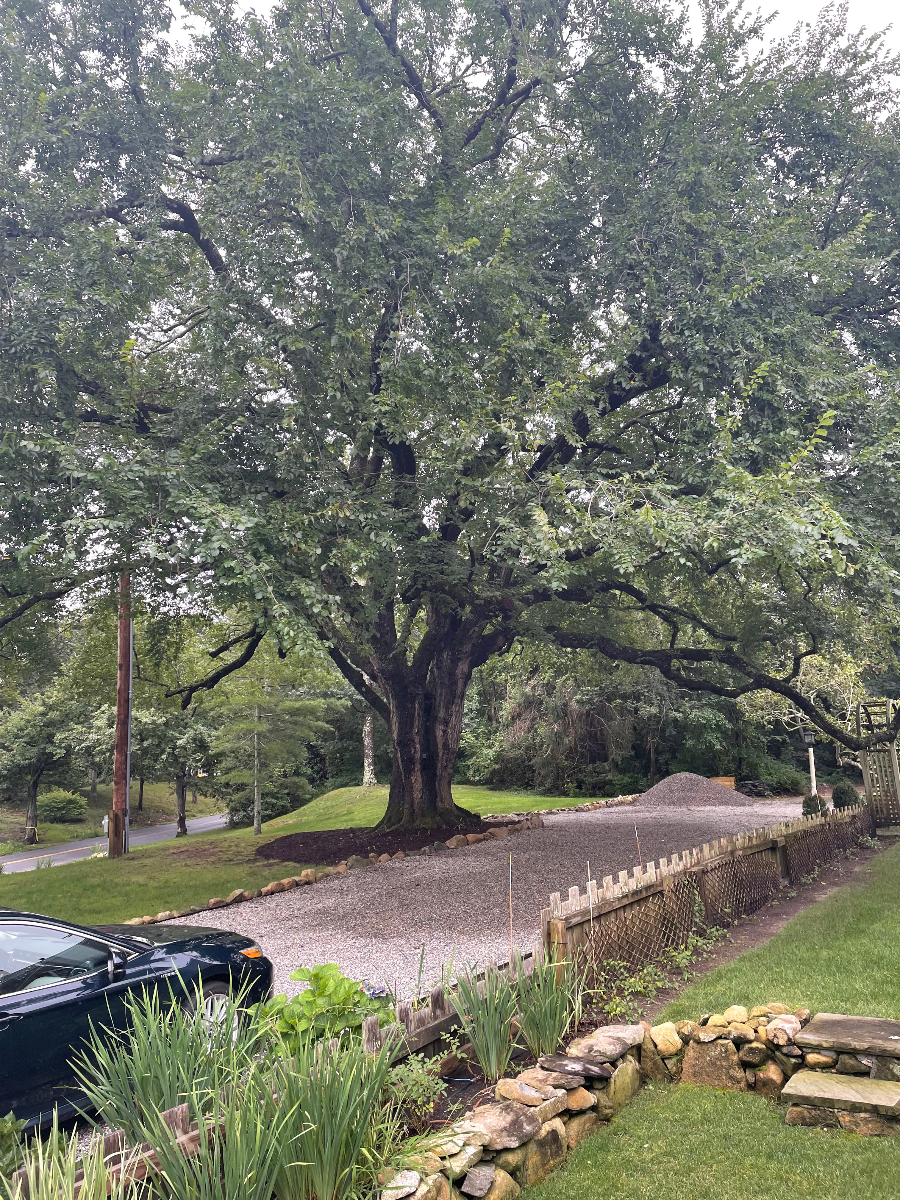 We have other fabulous trees—and some new ones we’re nurturing (I worry about the pink dogwood sapling across the yard from the elm, struggling to dig its roots)—including two grand English oaks in the back yard. Sanity Goddess did some research, as is her wont, and found that in the 17th century packing crates from England used acorns as buffering, the way we use styrofoam peanuts now. We like to imagine that our oaks are the children of those acorns, just as we are the beneficiaries of the values—most of them—that the Puritans brought with them: a sense of civic responsibility, of egalitarian justice, of independence and, yes, propriety. I do not feel we “own” these trees; it would be absurd to call them “mine.” We steward them, grateful for their company. They live here; we’re just passing through.
